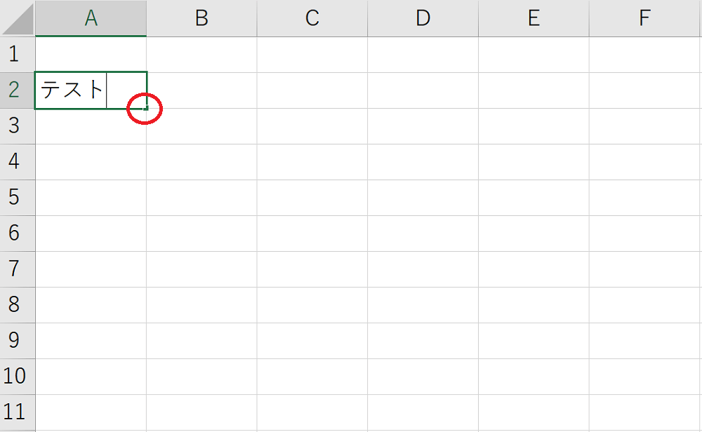 また、図2のように複数のセルが選択された状態で、赤丸で囲った部分にカーソルを合わせ、横にドラッグしてみます。