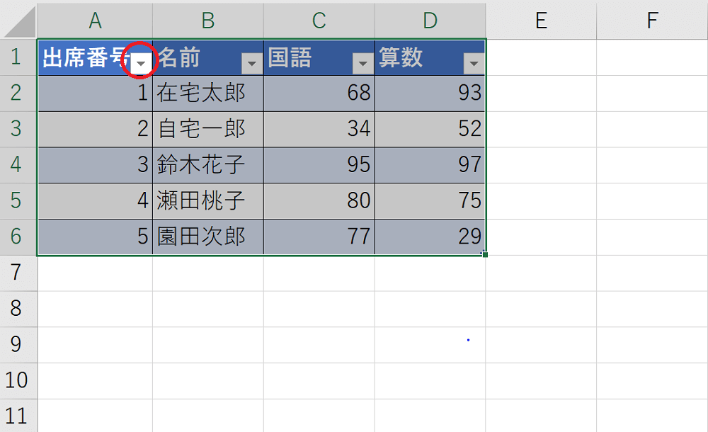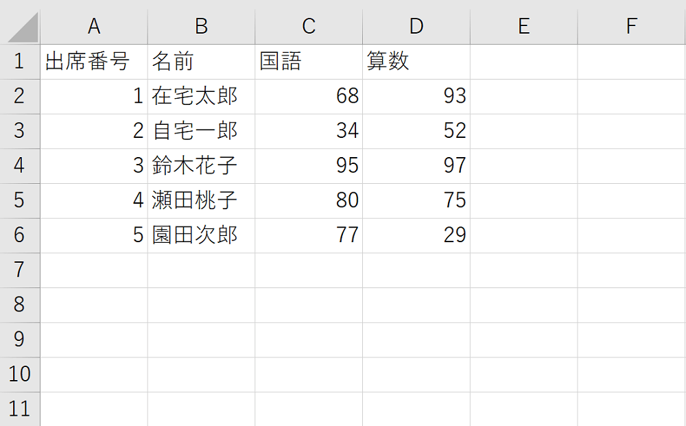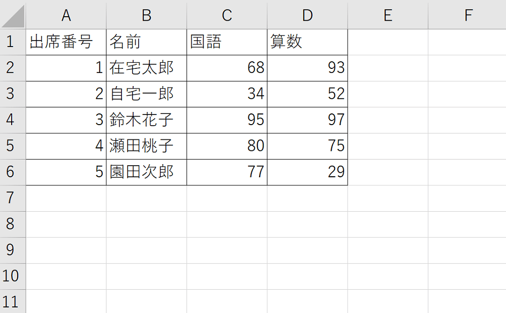 ちなみにこれは、クラスの子供たちの、テストの点数を表にしてみた例です。