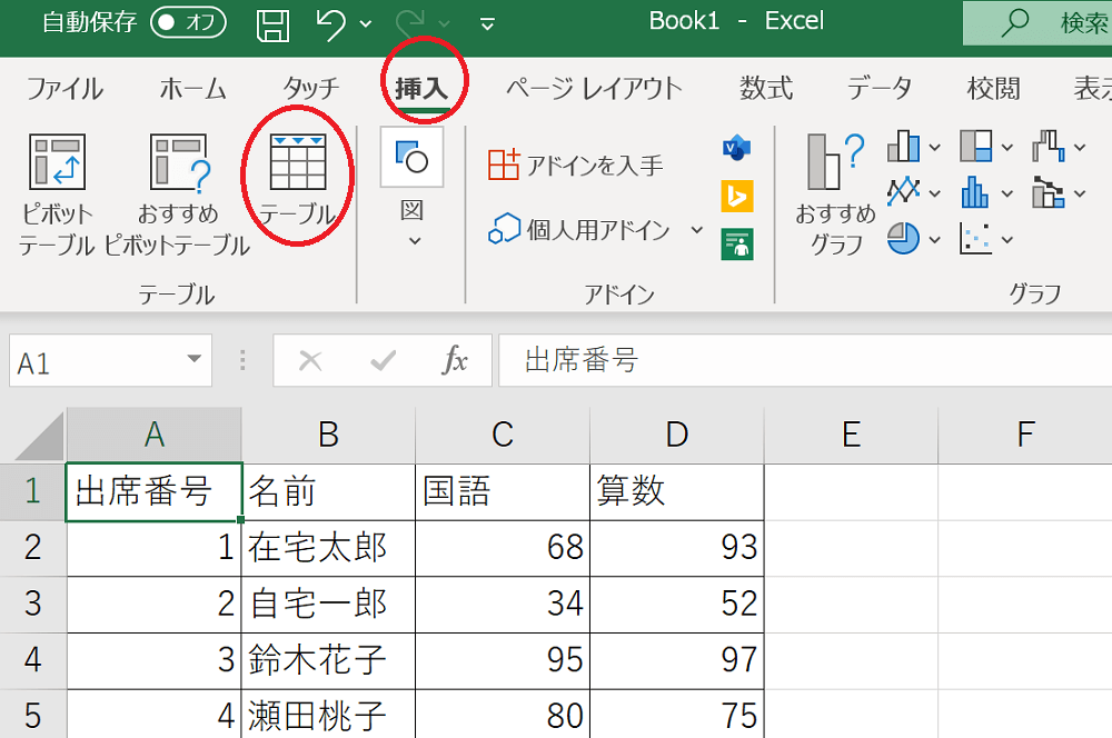 Excelの機能を使って数値の計算を行う場合、先ほど作成した表のままより、「テーブル」に変換しておく方が便利です。