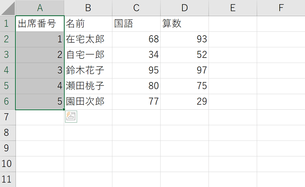 選択した複数のセルに同一のデータが入力されたことがわかります。