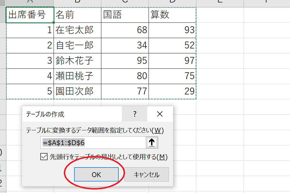 範囲に問題がなければ、「OK」をクリックします。