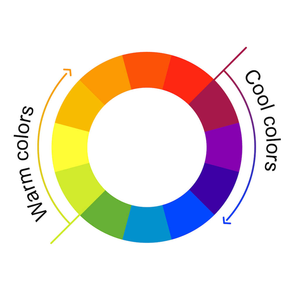 上記のように暖色・寒色・中間色が存在し、この色相環を用いることで簡単に配色を決めることが可能です。