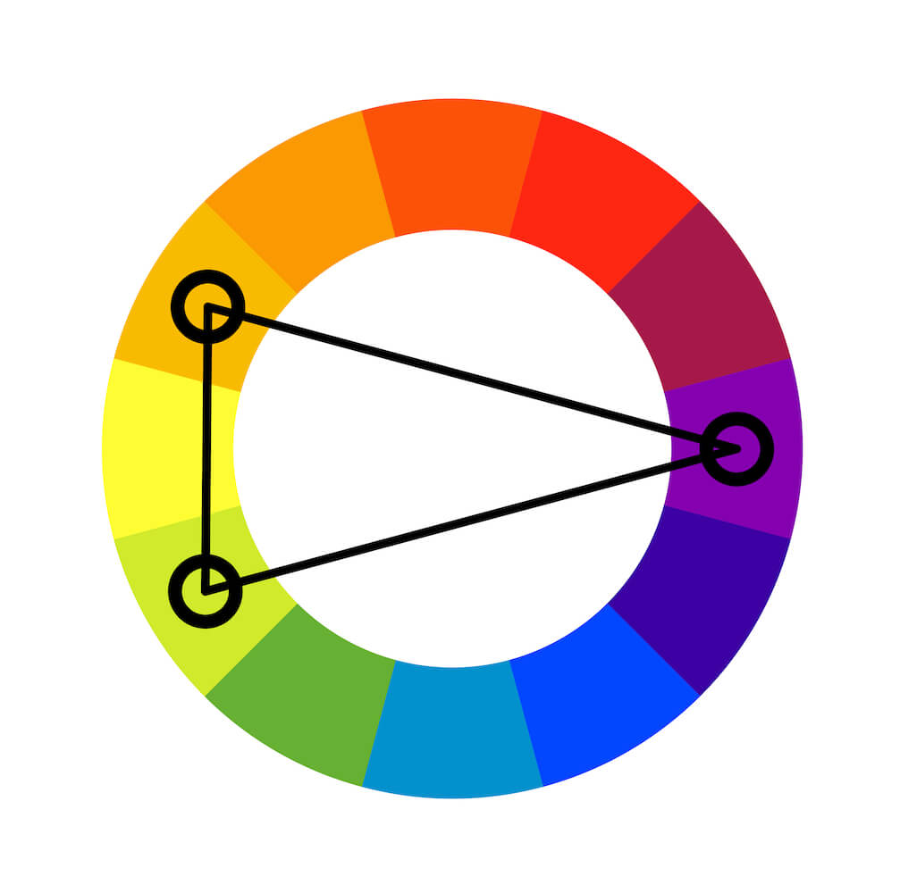 色相環の中で正三角形に結んだ3色の配色のことを3色配色と言います。