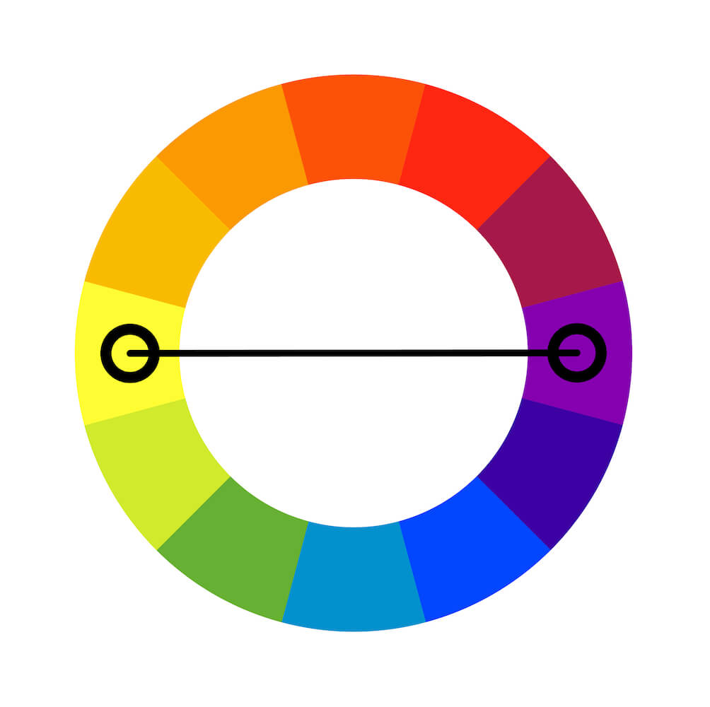 補色の関係にある色の片側の色の隣あわせにある色を組み合わせた配色を分裂補色配色と言います。
