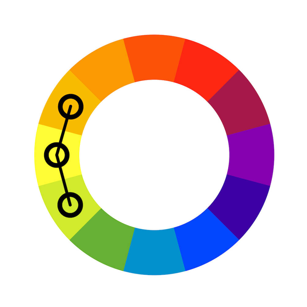 色相環の中で隣り合わせの3色を組み合わせた配色を類似色相配色と呼びます。