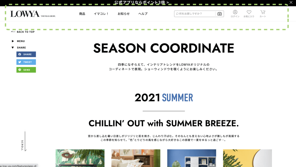 そして商品一覧を見ていくことができるようなレイアウトになっています。