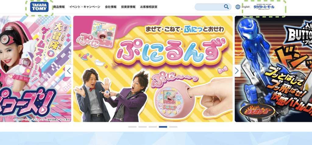タカラトミーでは、青色を反復して使用することで統一性を持たせています。