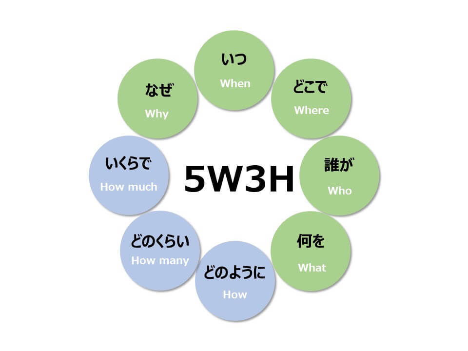 相手に的確に要件を伝えるためには、5W3Hをしっかりと相手に伝えることが求められます。